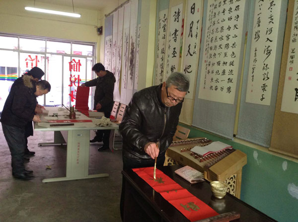 石泉書(shū)法家為社區(qū)居民義寫(xiě)春聯(lián)