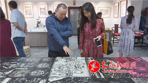 走進展廳,各具特色、創(chuàng)意新穎的黑白木刻版畫作品整齊陳列,《老城印象》、《黑山戰(zhàn)役》、《疫情防控》等等各類題材的版畫作品以一草一木,一山一石,一景一物,對時代主題、紅色經(jīng)典、鄉(xiāng)土文化作出了藝術創(chuàng)作者獨到的詮釋,吸引了眾多參觀者駐足觀看,互相交流感受體會。