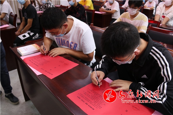 升學(xué)禮上,宣讀了“踐行新民風(fēng),集體升學(xué)禮”倡議書,呼吁各位家長和學(xué)生積極響應(yīng),以身作則,以實際行動踐行新民風(fēng)。并精心準(zhǔn)備了行李箱、書籍等生活用品。