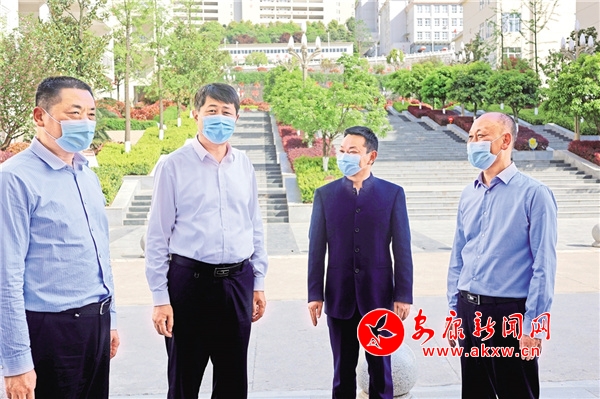 安康市委副書記、政法委書記范永斌(左二),旬陽市委書記陳紅星(左一)到旬陽市職教中心檢查指導工作。