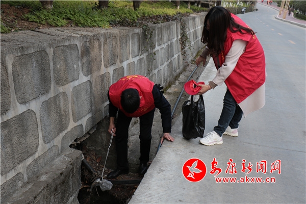 陽春三月,微風(fēng)不燥,太極城森林公園里的桃花灼灼開滿園,引得不少市民前來打卡的。不遠(yuǎn)處,一群“志愿紅”三三兩兩結(jié)伴而行,不時穿梭在公園的林間小路和灌木草叢中。只見他們一手提著垃圾袋一手捏著垃圾夾,佝僂著腰仔細(xì)搜尋著紙張、煙頭、塑料袋等,這些看似不起眼的小東西,卻直接影響著公園的衛(wèi)生和美觀。大家也不嫌臟,有的干脆直接跳進(jìn)路邊的排水渠清理垃圾。在經(jīng)過一番環(huán)境整治后,林間小道、草坪深處已不見塑料袋、果皮紙屑的蹤影,公園的地面也變得更加干凈整潔。