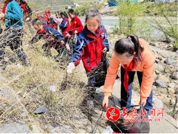 活動中,師生統(tǒng)一著裝,戴著手套,拿著塑料袋和火鉗等工具,沿著指定路線到達旬河邊安全區(qū)域。大家或一二結(jié)對相互配合,或三五成群分工協(xié)作,有的撿、有的夾、有的挖,都忙得不亦樂乎,通過兩個小時的努力,河道周圍煥然一新。