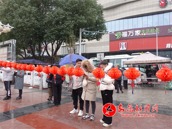 本網(wǎng)訊(通訊員 馮媛 黃倩)“飛雪連天迎春到,法治燈謎鬧元宵 。”2月23日上午,旬陽(yáng)市祝爾慷廣場(chǎng),雖大雪紛飛、天寒地凍,但人頭攢動(dòng)、熱鬧非凡。走近一看,原來(lái)這里正在舉辦旬陽(yáng)市2024年元宵節(jié)法治燈謎有獎(jiǎng)競(jìng)猜暨法治宣傳活動(dòng)。
