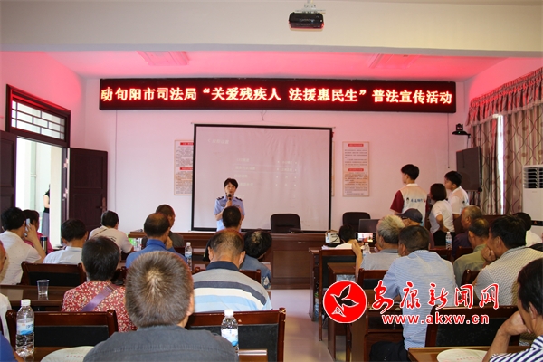 8月13日早上,在旬陽(yáng)市甘溪鎮(zhèn)甘溪社區(qū)活動(dòng)室里,旬陽(yáng)市司法局、市婦聯(lián)、市殘聯(lián)工作人員以“嘮家常”的方式你一言我一語(yǔ)地向臺(tái)下的群眾宣講著惠殘政策、助殘法律法規(guī)等知識(shí)。不同以往,本次宣講借助市殘聯(lián)舉辦的殘疾人技能培訓(xùn)契機(jī),專門針對(duì)殘疾人朋友送上了“法治大餐”。