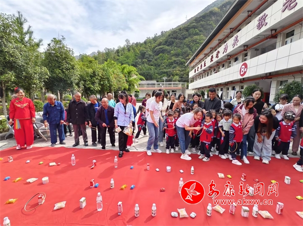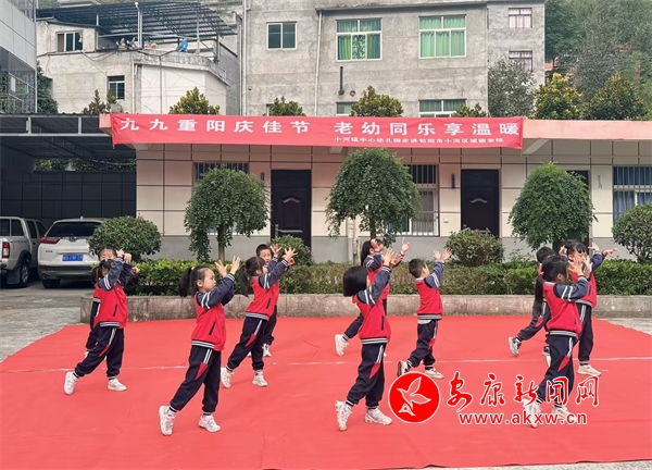 為弘揚(yáng)中華民族尊老敬老的傳統(tǒng)美德,培養(yǎng)幼兒尊老、敬老、助老、愛(ài)老的美好品質(zhì),在重陽(yáng)節(jié)來(lái)臨之際,10月10日,旬陽(yáng)市小河鎮(zhèn)中心幼兒園組織孩子們,走進(jìn)小河區(qū)域敬老院,開(kāi)展“九九重陽(yáng)慶佳節(jié),老幼同樂(lè)享溫暖”實(shí)踐活動(dòng);顒(dòng)中,孩子們?yōu)闋敔斈棠太I(xiàn)上了精心準(zhǔn)備的歌舞表演,老人們和孩子們一起系上大紅綢,扭起秧歌來(lái),大家一起進(jìn)行了有趣的游戲。孩子們用稚嫩的動(dòng)作,甜美的笑容,給老人們平淡的生活里帶去了歡樂(lè)。(通訊員 劉曉玲 李冬梅)