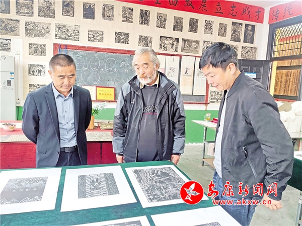 指導(dǎo)老師對瀛湖小學(xué)學(xué)生版畫進(jìn)行點評。 宋安平 攝