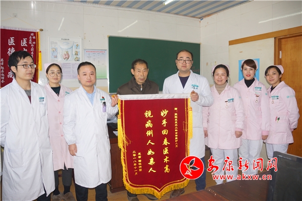 安康新聞網(wǎng)訊(通訊員 杜波兒 鄒發(fā)華)11月28日,家住小曙河中壩7組的患者楊桂洪,將一面寫(xiě)有“妙手回春醫(yī)術(shù)高,視病倒之人如親人”金色大字的錦旗贈(zèng)給了鎮(zhèn)坪縣醫(yī)院外二科,并不停舉起大拇指稱(chēng)贊醫(yī)護(hù)人員了不起,給了他第二次生命。