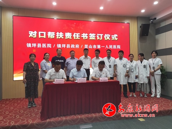 本網(wǎng)訊(通訊員 杜波兒 楊明榮)根據(jù)國家衛(wèi)生計生委等5部門《關(guān)于印發(fā)加強(qiáng)三級醫(yī)院對口幫扶貧困縣縣級醫(yī)院工作方案的通知》以及《關(guān)于開展2019-2020年蘇陜醫(yī)院對口幫扶工作的通知》(陜衛(wèi)醫(yī)發(fā)〔2019〕52號)的文件要求,為深入貫徹落實江蘇、陜西省委、省政府關(guān)于蘇陜對口幫扶工作,5月25日,鎮(zhèn)坪縣委常委、副縣長蔡小安率鎮(zhèn)坪縣衛(wèi)健局、縣醫(yī)院赴江蘇昆山市第一人民醫(yī)院對接對口支援工作,并簽署了對口支援責(zé)任書。昆山市衛(wèi)健委副主任朱敏等相關(guān)領(lǐng)導(dǎo)參加活動并發(fā)表講話。昆山市第一人民醫(yī)院、鎮(zhèn)坪縣衛(wèi)健局、縣醫(yī)院、疾控中心相關(guān)人員負(fù)參加簽字儀式。