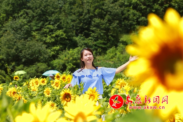 趁著周末,筆者走進竹葉村,只見成片的油葵花迎著朝陽競相綻放,裝扮著通村公路和田坎道路,處處是惹眼的金黃。微風(fēng)拂過,朵朵花盤迎風(fēng)搖曳,泛起陣陣黃綠相間的“浪花”。 不少游客在花海中打卡拍照留念,流連忘返。村里的農(nóng)家樂也是忙忙碌碌,客源不斷。