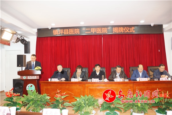 儀式上,市衛(wèi)健委宣讀了《關(guān)于授予鎮(zhèn)坪縣醫(yī)院二級甲等綜合醫(yī)院的批復(fù)》;楊彬和蔡小安為鎮(zhèn)坪縣醫(yī)院“二級甲等”醫(yī)院揭牌。儀式上,蔡小安、楊彬分別致辭,對鎮(zhèn)坪縣醫(yī)院獲得“二甲”醫(yī)院稱號表示祝賀并寄予深切厚望,希望鎮(zhèn)坪縣醫(yī)院全體職工繼續(xù)發(fā)揚艱苦奮斗、勇于拼搏的精神,抓住機(jī)遇,乘勢而上,在改革中探索,在管理上創(chuàng)新,在業(yè)務(wù)上求精,辦好鎮(zhèn)坪人自己的醫(yī)院,辦成老百姓滿意的醫(yī)院,為助力健康扶貧做出更大貢獻(xiàn)。陳文乾對鎮(zhèn)坪縣醫(yī)院以二甲創(chuàng)建為抓手,加強(qiáng)醫(yī)療質(zhì)量安全管理,落實醫(yī)療核心制度,實現(xiàn)了醫(yī)院零糾紛的好成績,是2019年濃墨重彩的一筆。更加堅定了對口支援鎮(zhèn)坪縣醫(yī)院的決心和信心,并對緊密型醫(yī)共體建設(shè)和與鎮(zhèn)坪縣的醫(yī)養(yǎng)聯(lián)合體提出了意見和合理化建議。