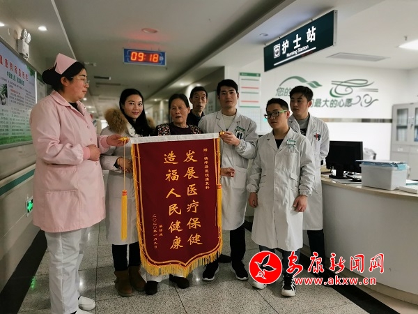 本網(wǎng)訊(通訊員 杜波兒 周元娟)寒冬已至,可鎮(zhèn)坪縣醫(yī)院康復(fù)科的病區(qū)卻溫暖如春。鎮(zhèn)坪縣醫(yī)院康復(fù)科大夫黃春敏收到患者粱修鳳老人親手送來的錦旗,上面寫著“發(fā)展醫(yī)療保健,造福人民健康”,錦旗表達(dá)了對(duì)黃春敏大夫及全體醫(yī)護(hù)工作者的感激之情。