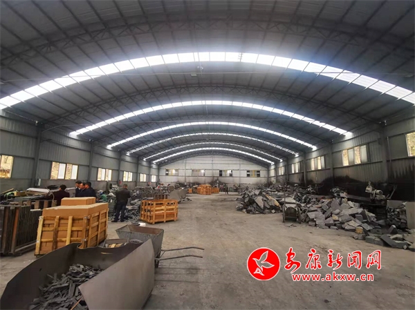 清明時(shí)節(jié),走在桃元村鴻利礦業(yè)加工廠里,機(jī)器轟鳴,叉車運(yùn)輸貨物,工人鑿開板石的聲音此起彼伏,一派繁忙的景象。