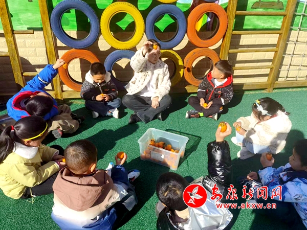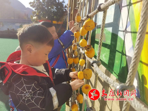 了解了柿子后,一起出發(fā)去采摘吧,孩子們在老師的帶領(lǐng)下興高采烈地來到柿子樹下,有的摘柿子、有的接柿子、有的放柿子,大家配合得非常默契,忙得不亦樂乎,看到這樣一番熱鬧的場景,老師也來幫忙,幫孩子們摘下他們夠不到的柿子。