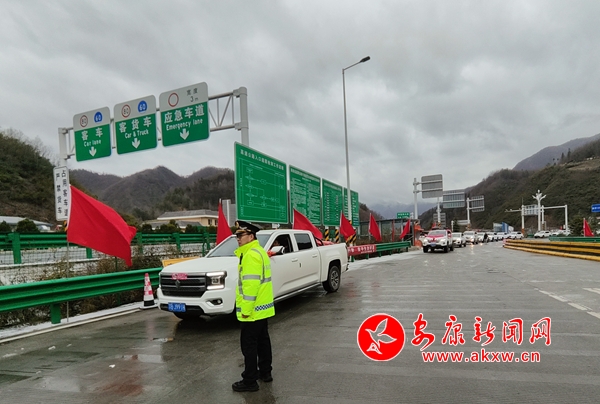 本網(wǎng)訊(楊明海 張旭)2月21日,因降雪結(jié)冰,安康境內(nèi)多條高速臨時(shí)性交通管制。在安(康)來(鳳)高速平(利)鎮(zhèn)(坪)段鐘寶收費(fèi)站外廣場,一支迎親車隊(duì)被滯留,陜西交控安平分公司鎮(zhèn)坪管理所緊急相助,為新人打通“幸福路”。