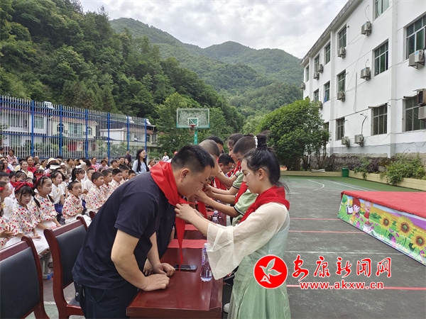 本網(wǎng)訊(通訊員 張萍)迎著火紅的隊(duì)旗,伴著嘹亮的號(hào)角,校園洋溢著節(jié)日的氛圍,5月31日,鎮(zhèn)坪縣洪石小學(xué)隆重舉行了“紅領(lǐng)巾愛祖國(guó)”新隊(duì)員入隊(duì)儀式暨慶“六一”科技藝術(shù)節(jié)。鎮(zhèn)坪縣武裝部、縣民政局、縣人社局、縣招商局、縣林業(yè)局、西安航空學(xué)院等相關(guān)領(lǐng)導(dǎo)出席此次活動(dòng),并為學(xué)校帶來教育幫扶資金,給孩子們送來了籃球、書包等禮品并致以節(jié)日的慰問。