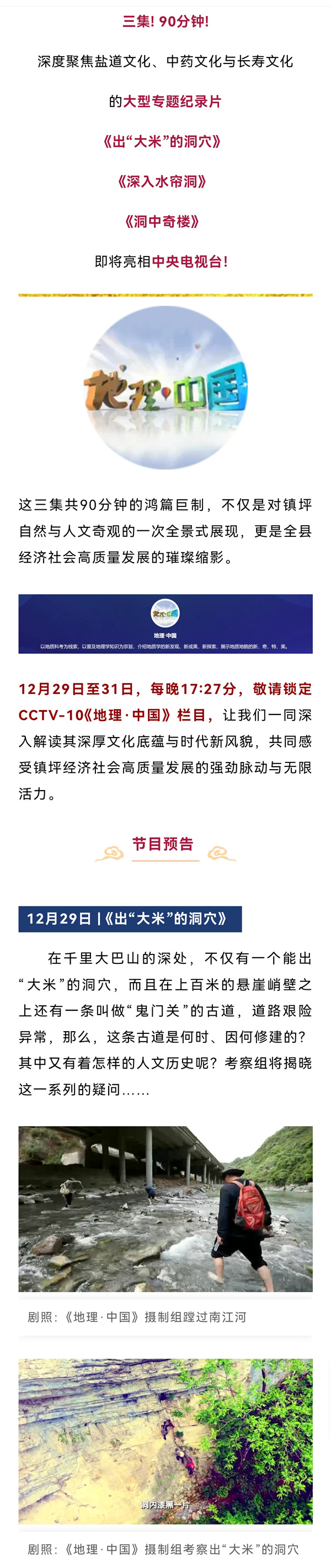 鎮(zhèn)坪再添重頭大戲 | 三集大型紀(jì)錄片亮相中央電視臺(tái)