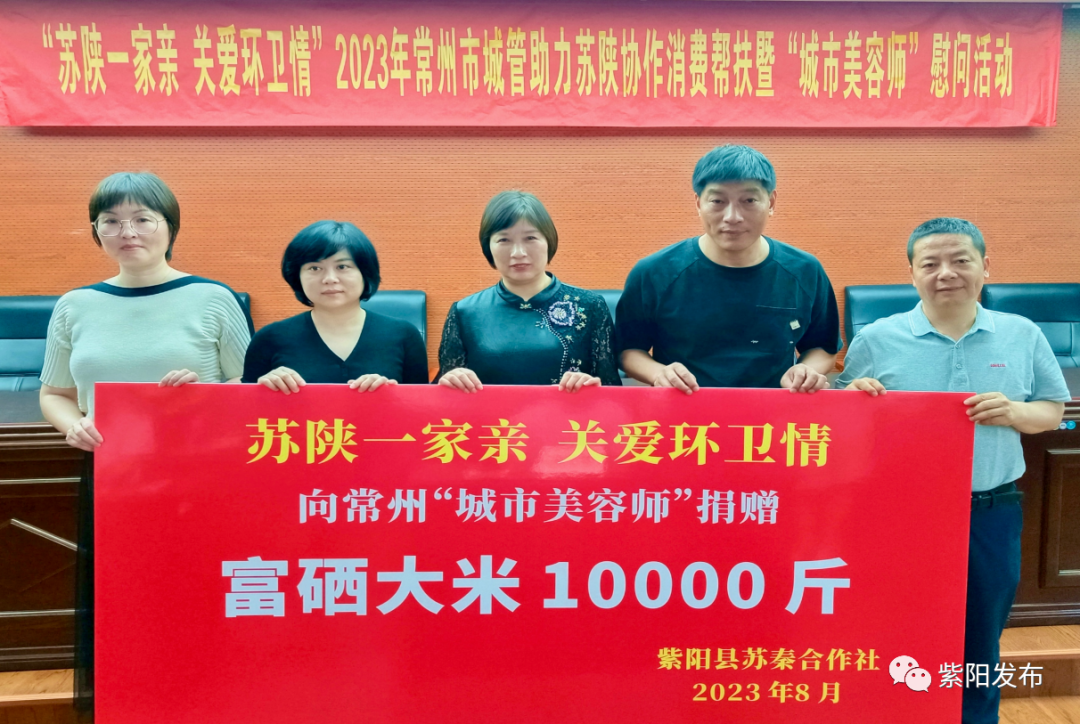 活動(dòng)上,紫陽縣蘇秦農(nóng)產(chǎn)品專業(yè)合作社向常州市環(huán)衛(wèi)工人捐贈(zèng)了10000斤紫陽大米作為慰問品,并與10家企事業(yè)單位簽訂了消費(fèi)幫扶產(chǎn)品購銷意向協(xié)議。