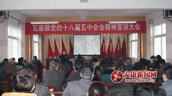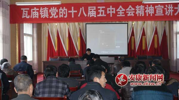 安康新聞網(wǎng)訊 (通訊員 周洪波 張景凡) 為深入學(xué)習(xí)宣傳貫徹黨的十八屆五中全會精神,切實把廣大干部群眾的思想和行動統(tǒng)一到全面深化改革的決策部署上來,近日,瓦廟鎮(zhèn)召開黨的十八屆五中全會精神宣講大會,鎮(zhèn)、村全體干部及駐鎮(zhèn)單位負(fù)責(zé)人共計85參會。