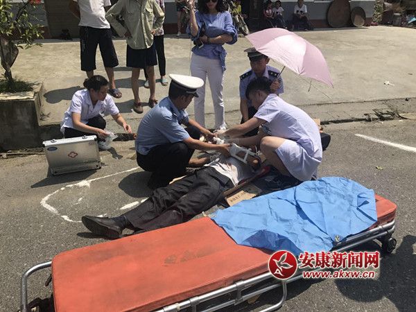 安康新聞網(wǎng)訊(通訊員 楊超)6月18日,紫陽公安局權(quán)河交警中隊(duì)民警接群眾報(bào)案,稱310省道98公里處一輛摩托車與中巴車相撞,摩托車司機(jī)頭部受傷,情況危殆。接報(bào)后,民警迅速趕赴事故現(xiàn)場(chǎng)發(fā)現(xiàn),碰撞后摩托車被甩至路邊,大梁及車頭解體,零部件碎片散落一地,摩托車駕駛員俯臥在公路中心線位置,頭部血流不止,左手不能移動(dòng)。傷員傷情無法確定,省道通行受阻極易發(fā)生二次事故,時(shí)間每過一分鐘便多一分危險(xiǎn),一系列不利因素?cái)[在民警眼前,現(xiàn)場(chǎng)情況十分緊急!民警冒著烈日迅速與醫(yī)護(hù)人員立即展開救護(hù)行動(dòng):一是在現(xiàn)場(chǎng)設(shè)置警示標(biāo)志、劃定管制警戒區(qū);二是民警與醫(yī)護(hù)人員一起對(duì)傷者進(jìn)行現(xiàn)場(chǎng)救治,再由救護(hù)車將傷者送院治療。由于警民的通力合作,有效地防止了二次事故的發(fā)生,為傷者的救治贏得了寶貴的時(shí)間。紫陽公安局權(quán)河交警中隊(duì)民警爭(zhēng)分奪秒搶救受傷群眾,使傷者脫離生命危險(xiǎn)。