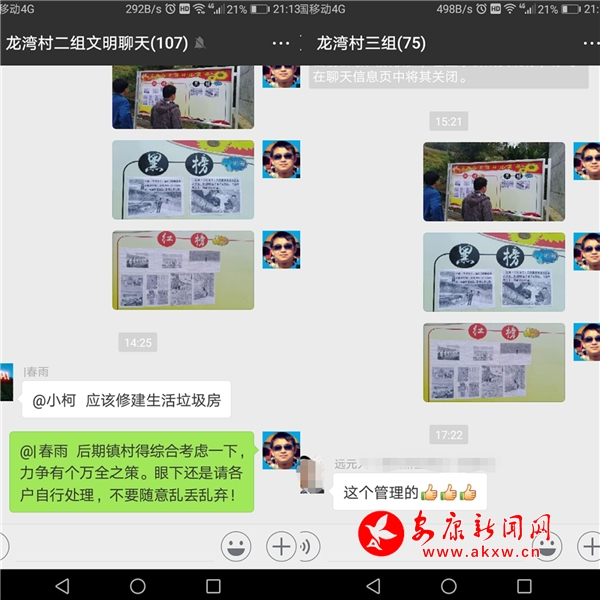 據(jù)悉,“紅黑榜”的啟用,就像一面具有放大作用的鏡子,什么該弘揚(yáng)點(diǎn)贊、什么該批評(píng)吐槽,任由廣大群眾自由評(píng)說,村兩委也無需過多解釋,大家有目共睹。同時(shí)還有專人負(fù)責(zé)將每期的紅黑榜拍成圖片轉(zhuǎn)發(fā)各村民小組的微信群,宣傳放大正反典型,任由群眾熱議。讓群眾逐漸形成互相教育監(jiān)督、互相管理提升的良好氛圍,一舉扭轉(zhuǎn)關(guān)鍵少數(shù)人的不良風(fēng)氣。