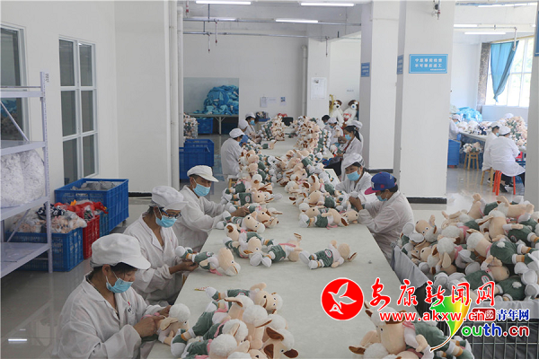 玩具廠還吸納了11名男性村民投身毛絨玩具生產加工。中國青年網記者 張博 攝