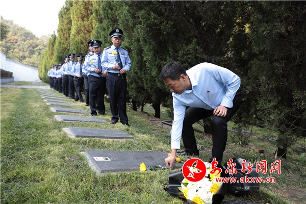 全體公安民警來(lái)到原紫陽(yáng)縣公安局煥古派出所民警、革命烈士、全國(guó)公安系統(tǒng)二級(jí)英雄模范羅春明墓碑前,依次獻(xiàn)花、行鞠躬禮,并為長(zhǎng)眠于此的革命烈士掃墓。