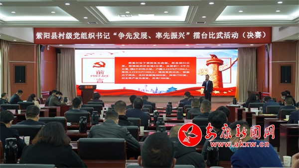 本網(wǎng)訊(通訊員 何珣)近日,紫陽縣委組織部舉辦的2022年度村級黨組織書記“爭先發(fā)展、率先振興”擂臺比武活動(決賽)引發(fā)全縣熱議,從17個鎮(zhèn)級擂臺比賽中脫穎而出的優(yōu)秀村黨支部書記同臺競技講思路、談體會、曬成績、亮答卷,全方位交流展示抓黨建促鄉(xiāng)村振興工作實踐成效,贏得現(xiàn)場陣陣掌聲。