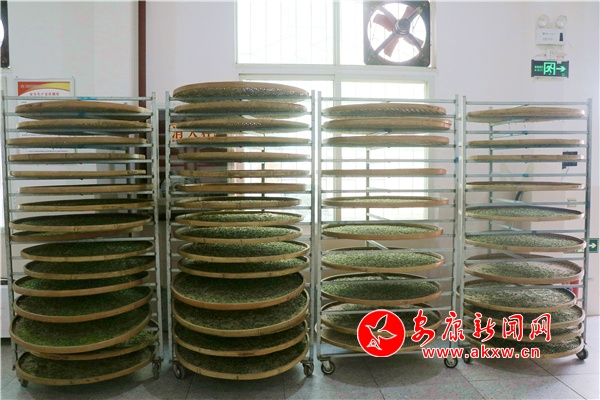與此同時(shí),洄水鎮(zhèn)境內(nèi)的數(shù)十家茶企(廠)也在加班加點(diǎn)趕制明前茶。在科宏茶業(yè)有限公司生產(chǎn)車(chē)間,制茶師傅有條不紊地操作著專(zhuān)業(yè)化設(shè)備,按照殺青、揉捻、烘焙等流程制作新茶,濃郁的茶香彌漫整個(gè)車(chē)間。殺青機(jī)、揉捻機(jī)、烘干機(jī)等機(jī)械代替了傳統(tǒng)手工,生產(chǎn)效率更高,茶葉品質(zhì)也更加穩(wěn)定。
