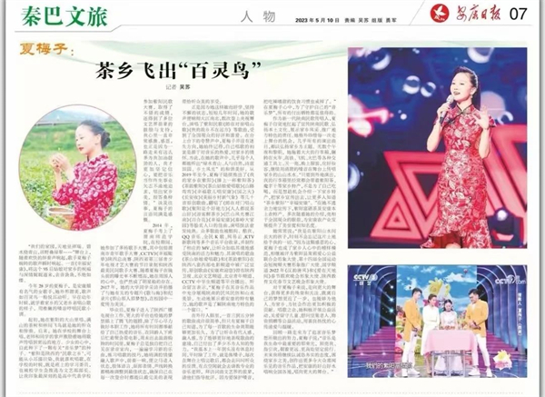 此外,由安康日?qǐng)?bào)社聯(lián)合百靈鳥文化傳媒共同出品的陜南民歌《幸福歌兒唱安康》于6月9日在陜西5套(公共頻道)播出,由紫陽(yáng)文廣局出品、夏梅子演唱的《漂流之歌》也將于近期播出。