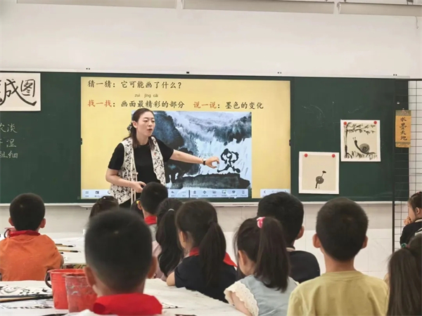 活動(dòng)中,鐘樓第二實(shí)驗(yàn)小學(xué)副校長(zhǎng)方文婷和常州經(jīng)開區(qū)教學(xué)部主任楊婷老師分別呈現(xiàn)了一年級(jí)美術(shù)課程《葉子片片》和《練筆成圖》。兩位老師的課程內(nèi)容充滿創(chuàng)新與深度。授課內(nèi)容從印刷術(shù)與拓染法相結(jié)合,引導(dǎo)學(xué)生們探索美術(shù)與生活的緊密聯(lián)系,到通過(guò)手指操的引導(dǎo),幫助孩子們?cè)谥饾u掌握水墨畫的基本坐姿和執(zhí)筆方法中感受傳統(tǒng)文化魅力。