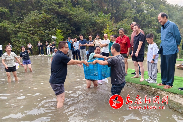 活動現(xiàn)場,進行了垂釣、徒手摸魚、剝玉米、刨土豆等趣味農事比賽。徒手摸魚是“熱門賽事”,在場地中,參賽者們目光鎖定目標,隨著哨聲響起,身手矯健地追逐著不斷跳躍的魚,不一會兒每個選手都抓住了“心選目標”。另一邊,剝玉米比賽也正在緊張有序地進行著,參賽者們鉚足干勁,聚精會神、爭分奪秒將手中的玉米棒“脫粒歸倉”。與此同時,垂釣、刨土豆也已精彩開賽,現(xiàn)場加油聲和歡笑聲不絕于耳,大家都沉浸在勞動的熱情和豐收的喜悅之中。
