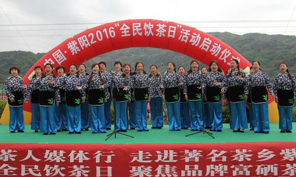 4月17日,由紫陽縣委、紫陽縣政府、中國茶葉學(xué)會和陜西省茶人聯(lián)誼會共同舉辦的紫陽縣2016“全民飲茶日”活動啟動儀式在向陽鎮(zhèn)富硒茶觀光園隆重舉行!叭瘛