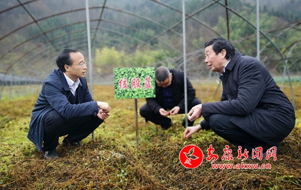 魯琦先后深入平利縣老縣鎮(zhèn)、城關鎮(zhèn)和廣佛鎮(zhèn),了解北醫(yī)大絞股藍基地、興強富硒茶葉(絞股藍)公司、秦漢古茶、東山寨魔芋產業(yè)發(fā)展情況。在北醫(yī)大絞股藍種源基地,魯琦在田間地頭同有關方面負責人一起憶歷程、談現(xiàn)狀、話未來,他指出,要認真總結平利絞股藍產業(yè)的發(fā)展經驗,切實針對市場需求,有效挖掘“中國絞股藍原產地”“絞股藍之父”“中國馳名商標”品牌效益,積極爭取絞股藍“食藥同源”盡快獲批,不斷加大產品研發(fā)、種源培育、規(guī);N植力度,拓寬營銷渠道,全力唱響“全國富硒絞股藍生產第一縣”金字招牌。