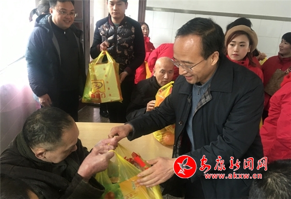 魯琦十分操心市社會福利院老人們的吃穿住醫(yī)情況,不僅為他們送去了大米、蔬菜、糧油、水果、慰問金,還走進老人們的宿舍、醫(yī)務室、餐廳、活動房,給他們送上節(jié)日禮包。魯琦囑咐工作人員一定要調(diào)配好飲食,安排好起居,保持好衛(wèi)生,全心全意服務保障好老人身體健康、生活舒心。看到市縣職業(yè)農(nóng)民協(xié)會的企業(yè)家也自發(fā)組織到福利院開展慰問活動,魯琦非常高興,對他們關心關愛弱勢群體的善行義舉表示贊賞,并鼓勵和希望他們把奉獻愛心、傳遞真情的好做法一直堅持下去,影響和帶動更多的人關心支持社會福利事業(yè)。最后魯琦還與福利院的老人們圍坐在一起吃團圓餃子。