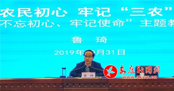 本網(wǎng)訊 10月31日上午,副市長魯琦緊扣“不忘初心、牢記使命”主題教育,以“不忘農(nóng)民初心、牢記‘三農(nóng)’使命”為題,給分管部門黨員干部講黨課。市農(nóng)業(yè)農(nóng)村局、市水利局、市林業(yè)局、市民政局、市富硒辦、市供銷社、市殘聯(lián)等農(nóng)口部門黨員干部及市政府辦部分黨員干部參加。