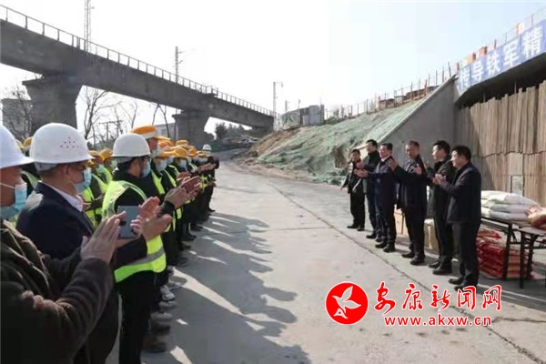 在北環(huán)線施工現(xiàn)場,高晶華指出,北環(huán)線建設(shè)是拉大城市骨架、提升通行順捷、疏解城市壓力的控制性工程。項目開工以來,大家心懷筑路夢,不畏艱與辛,主體工程推進(jìn)順利,市委、市政府和全市人民對你們表示敬重和感謝。希望大家搶抓時機(jī),排除困難,保障質(zhì)量,安全施工,確保如期建成通車。