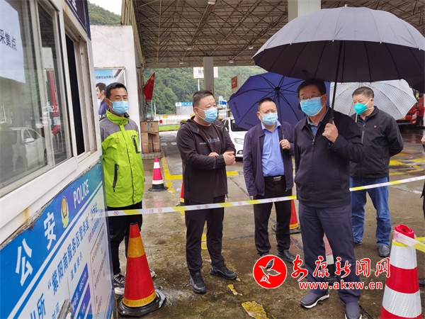 周康成來(lái)到紫陽(yáng)南服務(wù)區(qū)、紫陽(yáng)高速出口、城關(guān)鎮(zhèn)隔離點(diǎn)等地方檢查督導(dǎo),看望慰問(wèn)駐點(diǎn)、蹲守的一線防控人員,叮囑他們?cè)?ldquo;守好門(mén)”、“管好人”的同時(shí),一定要確保自身防護(hù)萬(wàn)無(wú)一失。