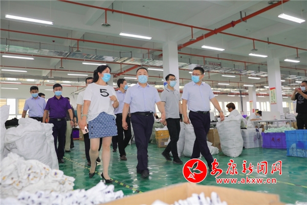 市長(zhǎng)武文罡(右三)在五里工業(yè)集中區(qū)新樂祥襪業(yè)調(diào)研