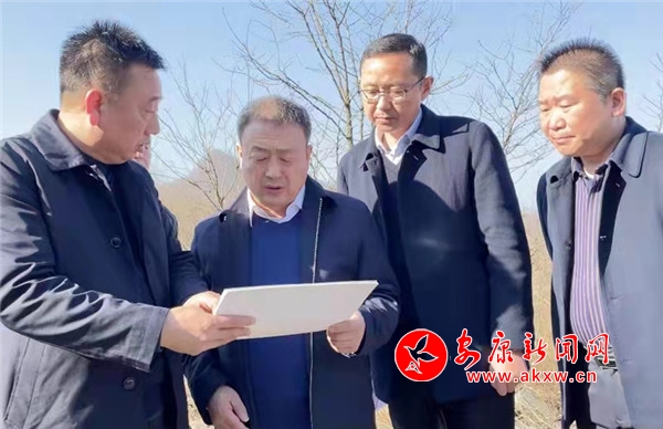 市長武文罡(左二)在明華煤礦礦山生態(tài)環(huán)境恢復(fù)治理工程現(xiàn)場查看治理進(jìn)展情況