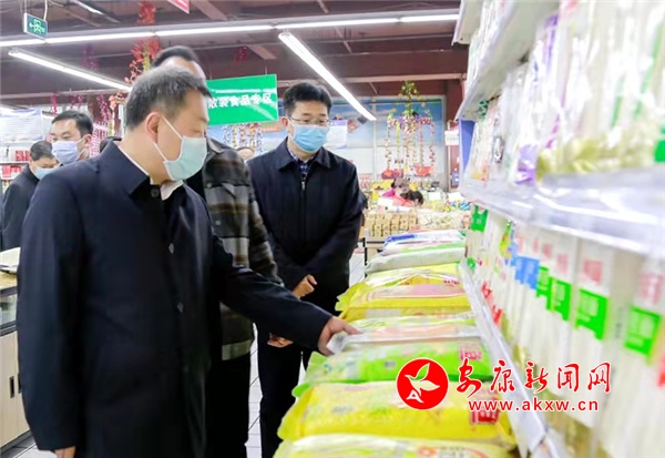 (市長武文罡在喜盈門超市南環(huán)路店實地查看米面等生活必需品供應(yīng)情況)