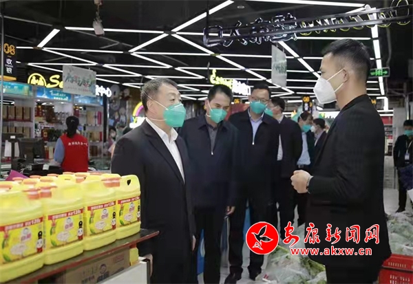 武文罡一行在紫陽縣城關鎮(zhèn)會仙橋社區(qū)萬友超市檢查生活物資供應情況。記者 吳單 攝