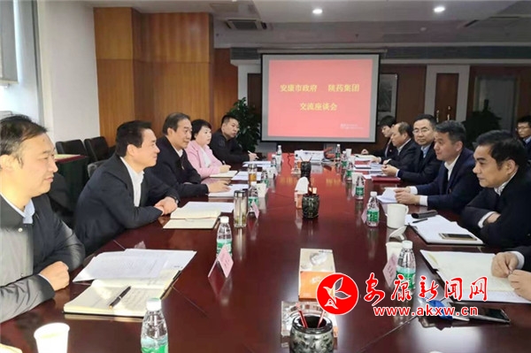 在陜藥集團(tuán),趙俊民詳細(xì)介紹了安康市經(jīng)濟(jì)社會發(fā)展特別是生物醫(yī)藥產(chǎn)業(yè)發(fā)展情況。趙俊民表示,安康優(yōu)質(zhì)道地中藥材資源豐富,隨著基地建設(shè)的加快推進(jìn)和加工企業(yè)的發(fā)展壯大,生物醫(yī)藥產(chǎn)業(yè)具備了轉(zhuǎn)型升級的堅(jiān)實(shí)基礎(chǔ)。希望陜藥集團(tuán)積極發(fā)揮行業(yè)龍頭作用,與安康市相關(guān)企業(yè)深度合作,發(fā)揮道地藥材資源優(yōu)勢,推動(dòng)產(chǎn)業(yè)發(fā)展,實(shí)現(xiàn)互利共贏。陜藥集團(tuán)總經(jīng)理李元表示,良好的營商環(huán)境和產(chǎn)業(yè)基礎(chǔ)是企業(yè)選擇安康的信心所在,陜藥集團(tuán)將積極履行國有企業(yè)社會責(zé)任,進(jìn)一步加大投資額度、拉長產(chǎn)業(yè)鏈條、擴(kuò)大合作領(lǐng)域,支持安康生物醫(yī)藥產(chǎn)業(yè)發(fā)展壯大。
