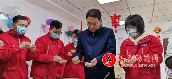 隨后,趙俊民來到項目部職工食堂,與大家一起包餃子吃團年飯,其樂融融迎新年。