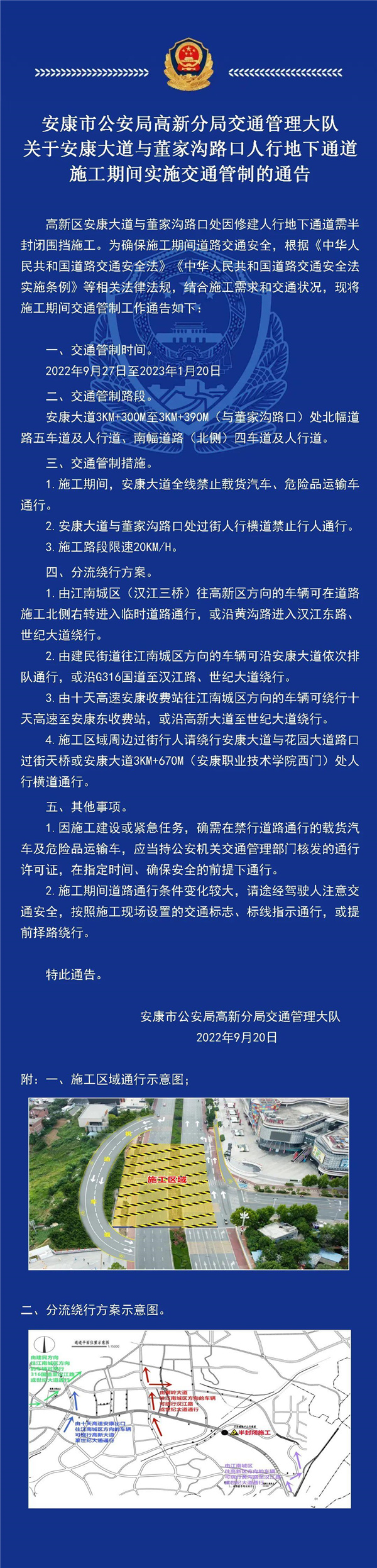 注意!9月27日起,安康大道與董家溝路口人行地下通道施工期間實(shí)施交通管制