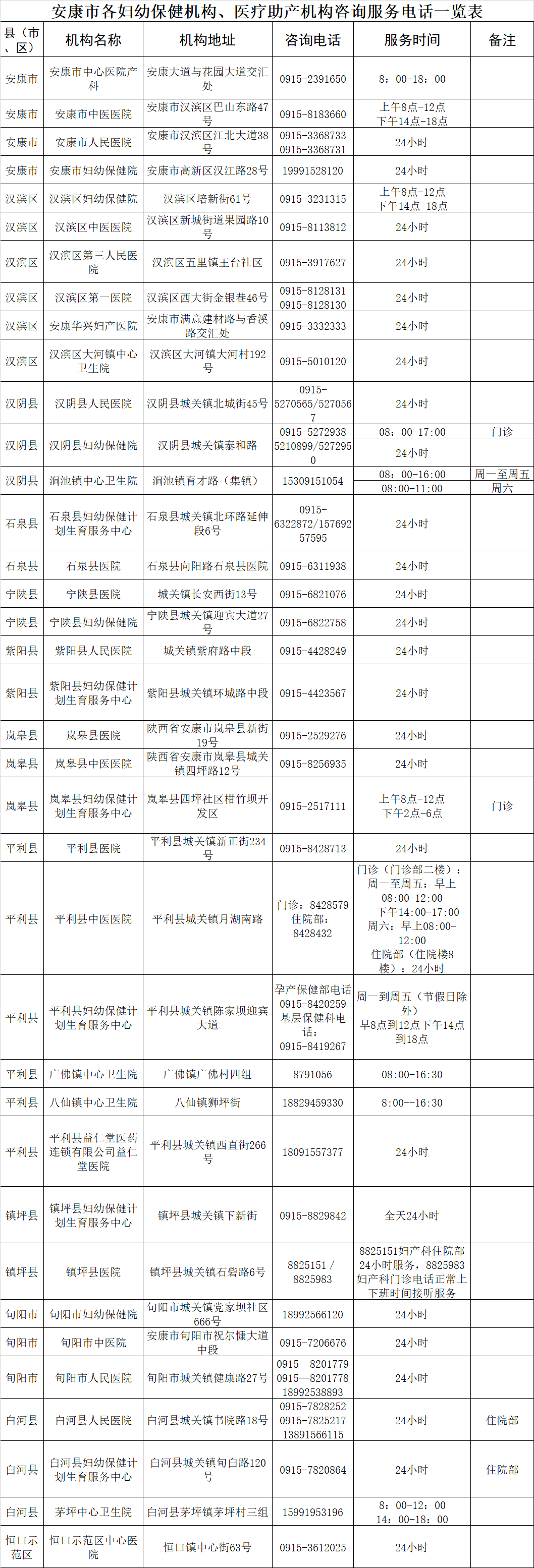 附件:安康市各婦幼保健機構(gòu)、醫(yī)療助產(chǎn)機構(gòu)咨詢服務電話一覽表HW6安康新聞網(wǎng)