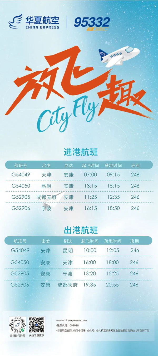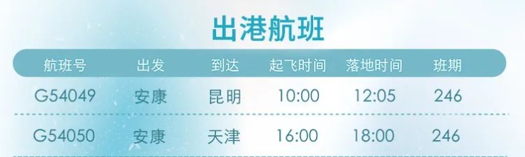 12月26日起,安康富強(qiáng)機(jī)場(chǎng)新增“安康=昆明”“安康=天津”航線。具體航線航班如圖:yev安康新聞網(wǎng)