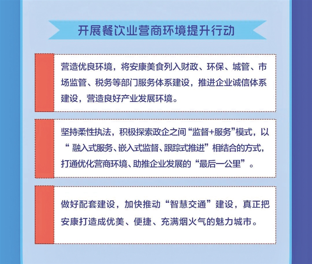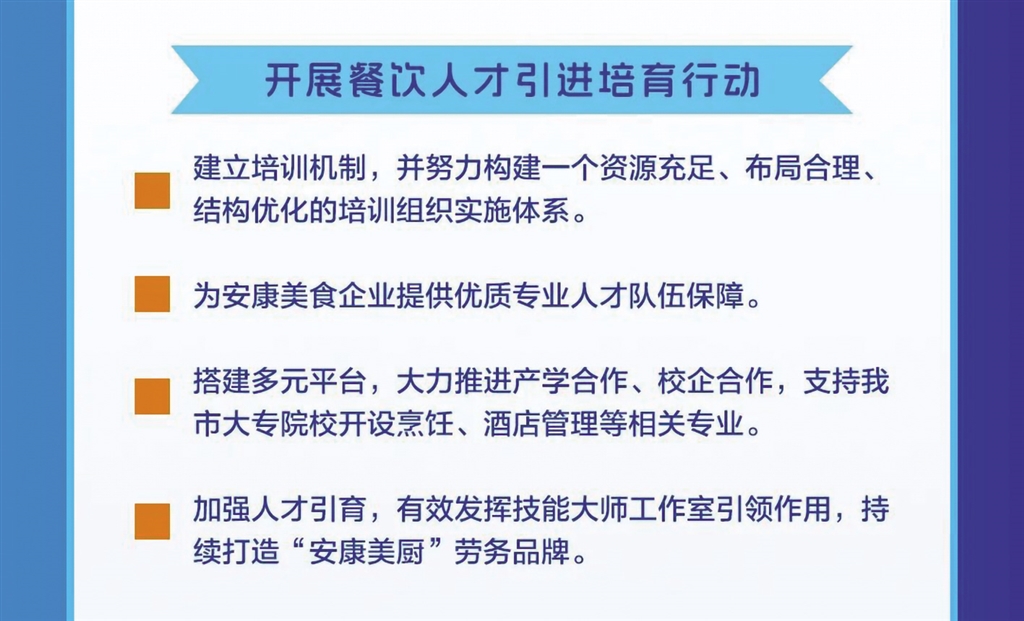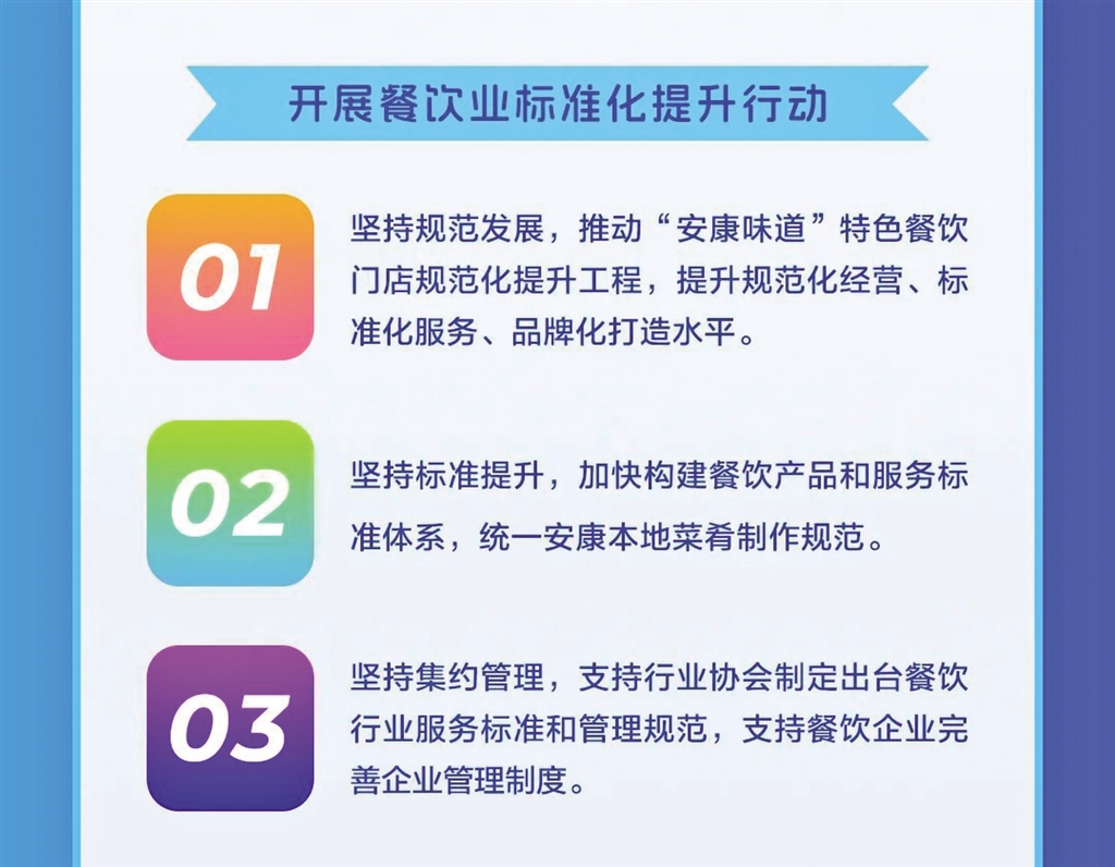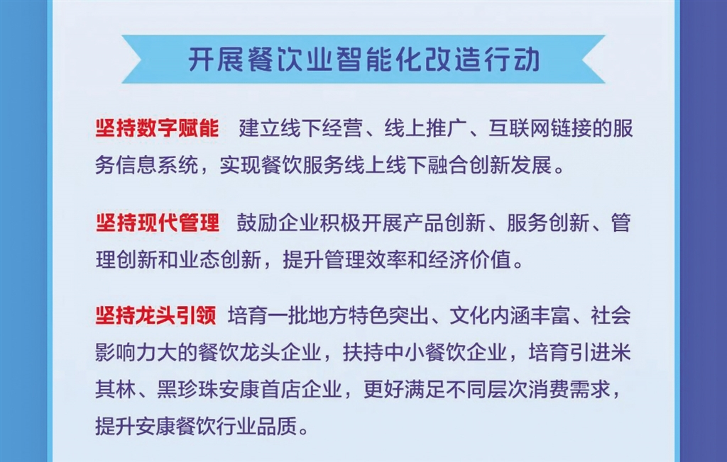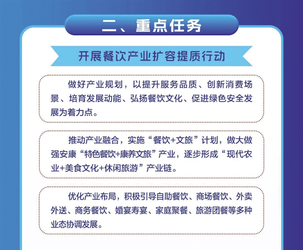 日前,安康市商務(wù)局等11部門聯(lián)合發(fā)布《關(guān)于進(jìn)一步推進(jìn)全市餐飲業(yè)高質(zhì)量發(fā)展的實(shí)施意見》,本期帶您一圖讀懂其重點(diǎn)任務(wù)。QNg安康新聞網(wǎng)