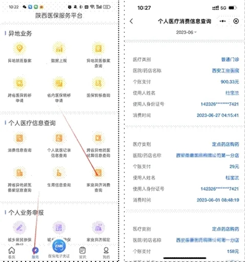 在“陜西醫(yī)保”APP“服務”界面,選擇家庭共濟消費查詢功能,授權者可查詢到使用者的家庭共濟消費情況。