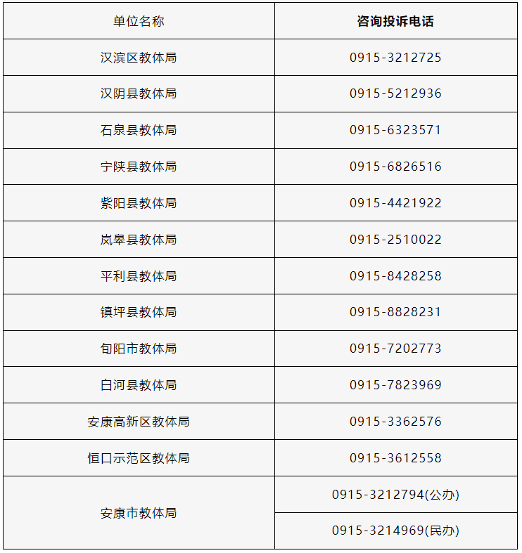 2.2024年安康市義務(wù)教育招生入學(xué)工作咨詢投訴電話