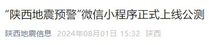 “陜西地震預(yù)警”微信小程序正式上線公測